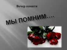 Мы помним…. Вечер памяти Они ушли, они остались…