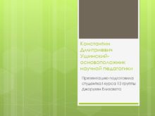 Константин Дмитриевич Ушинский-основоположник научной педагогики Презентацию подготовила студентка