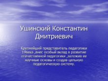 Ушинский Константин Дмитриевич Крупнейший представитель педагогики 19века ,внес