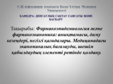 Тақырыбы: Фармакоэпидемиология және фармакоэканомика: анықтамасы, даму кезеңдері, негізгі