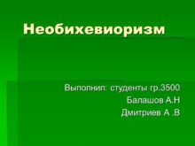 Необихевиоризм Выполнил: студенты гр.3500 Балашов А.Н Дмитриев А