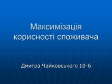 Максимізація корисності споживача Дмитра Чайковського 10-б Теорія граничної