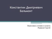 Константин Дмитриевич Бальмонт Выполнил: ученик 11 класса Рыжков