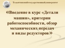 «Введение в курс «Детали машин», критерии работоспособности, обзор
