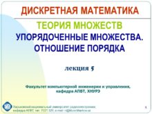 1 ТЕОРИЯ МНОЖЕСТВ УПОРЯДОЧЕННЫЕ МНОЖЕСТВА. ОТНОШЕНИЕ ПОРЯДКА лекция