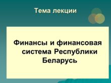 Тема лекции Финансы и финансовая система Республики Беларусь