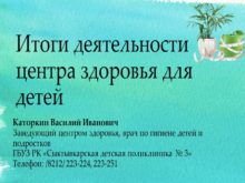 Итоги деятельности центра здоровья для детей Каторкин Василий