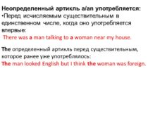 Неопределенный артикль a/an употребляется: Перед исчисляемым существительным в