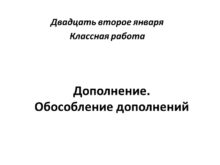 Дополнение. Обособление дополнений Двадцать второе января Классная работа