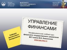 УПРАВЛЕНИЕ ФИНАНСАМИ Межфакультетский учебный курс факультета государственного управления