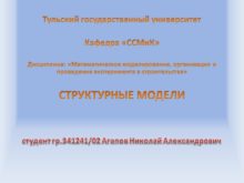 Тульский государственный университет Кафедра «ССМиК» Дисциплина: «Математическое моделирование,