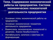 Тема. Содержание экономической работы на предприятии. Система экономических