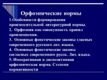Орфоэпические нормы 1.Особенности формирования произносительной литературной нормы. 2.