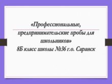 «Профессиональные, предпринимательские пробы для школьников» 8Б класс школы