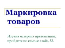 Маркировка товаров Изучив материал презентации, пройдите по ссылке