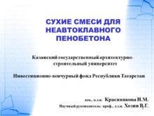 1 СУХИЕ СМЕСИ ДЛЯ НЕАВТОКЛАВНОГО ПЕНОБЕТОНА Казанский государственный