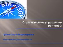 Стратегическое управление регионом Губина Ольга Владимировна [email protected] Нормативно-правовая