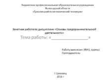 Зачетная работа по дисциплине «Основы предпринимательской деятельности» Тема