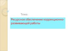 Ресурсное обеспечение коррекционно-развивающей работы Тема: Образовательная среда —