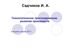 Садчиков И. А. Технологическое прогнозирование развития производств К