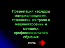 Презентация кафедры материаловедения, технологии контроля в машиностроении и