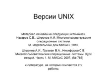 Версии UNIX Материал основан на следующих источниках. Назаров