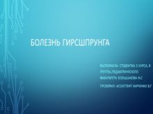 Болезнь Гирсшпрунга Выполнила: студентка 5 курса, 8 группы,педиатрического