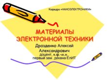 МАТЕРИАЛЫ ЭЛЕКТРОННОЙ ТЕХНИКИ Дрозденко Алексей Александрович доцент, к.ф.-м.н.,