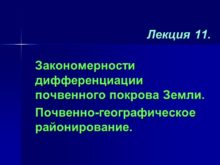 Лекция 11. Закономерности дифференциации почвенного покрова Земли. Почвенно-географическое