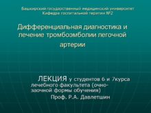 Дифференциальная диагностика и лечение тромбоэмболии легочной артерии ЛЕКЦИЯ