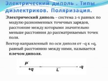 Электрический диполь . Типы диэлектриков. Поляризация. Электрический диполь
