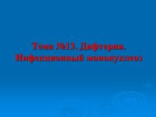 Тема №13. Дифтерия. Инфекционный мононуклеоз План Определение и