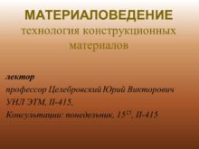 МАТЕРИАЛОВЕДЕНИЕ технология конструкционных материалов лектор профессор Целебровский Юрий