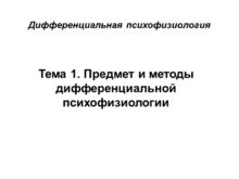 Дифференциальная психофизиология Тема 1. Предмет и методы дифференциальной