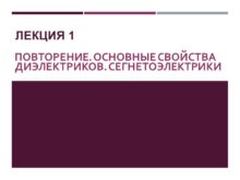 Лекция 1 Повторение. Основные Свойства диэлектриков. сегнетоэлектрики 1
