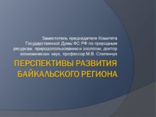 Перспективы развития Байкальского региона Заместитель председателя Комитета Государственной