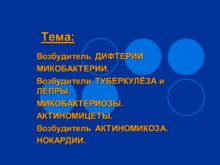 Тема: Возбудитель ДИФТЕРИИ МИКОБАКТЕРИИ. Возбудители ТУБЕРКУЛЁЗА и ЛЕПРЫ.