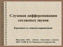 Слуховая дифференциация согласных звуков Жакулина И.В., учитель начальных