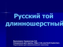Русский той длинношерстный Выполнила: Сержантова Н.Е. Специально для