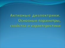 Активные диэлектрики. Основные параметры, свойства и характеристики Содержание