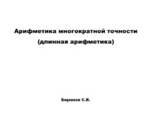 Арифметика многократной точности (длинная арифметика) Бирюков С.В. План