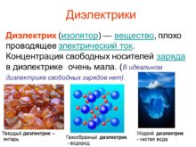 Диэлектрики Диэлектрик (изолятор) — вещество, плохо проводящее электрический