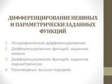 ДИФФЕРЕНЦИРОВАНИЕ НЕЯВНЫХ И ПАРАМЕТРИЧЕСКИ ЗАДАННЫХ ФУНКЦИЙ Логарифмическое дифференцирование.