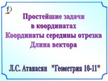 Простейшие задачи в координатах Координаты середины отрезка Длина