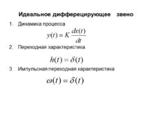 Идеальное дифферецирующее звено Динамика процесса Переходная характеристика Импульсная