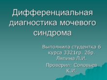Дифференциальная диагностика мочевого синдрома Выполнила студентка 6 курса