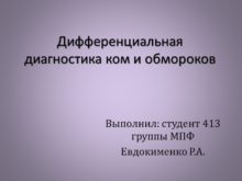 Дифференциальная диагностика ком и обмороков Выполнил: студент 413