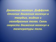 Движение молекул. Диффузия. Отличие движения молекул в твердых,