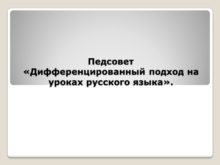 Педсовет «Дифференцированный подход на уроках русского языка». Содержание: