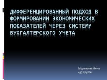 ДИФФЕРЕНЦИРОВАННЫЙ ПОДХОД В ФОРМИРОВАНИИ ЭКОНОМИЧЕСКИХ ПОКАЗАТЕЛЕЙ ЧЕРЕЗ СИСТЕМУ